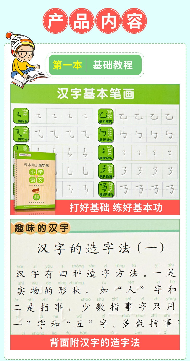 半小时前 小学生1-6年级语文练字帖凹槽硬笔书法练字本(3本装)